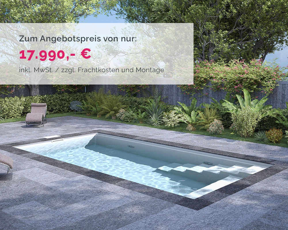 Verwandeln Sie Ihren Garten in eine Wellness-Oase! Mit unseren Herbsthighlights ist Wohlfühlen und Entspannen garantiert – auch in der kühleren Jahreszeit. Entscheiden Sie sich für Premium-Qualität und -Leistung vom Profi. Wir haben für Sie drei exklusive Aktionspakete mit modernen Pool-Komplettsets geschnürt – jedes beinhaltet ein hochwertiges GFK Design-Fertigbecken und auf Wunsch eine stilvolle Schwimmbad-Überdachung.