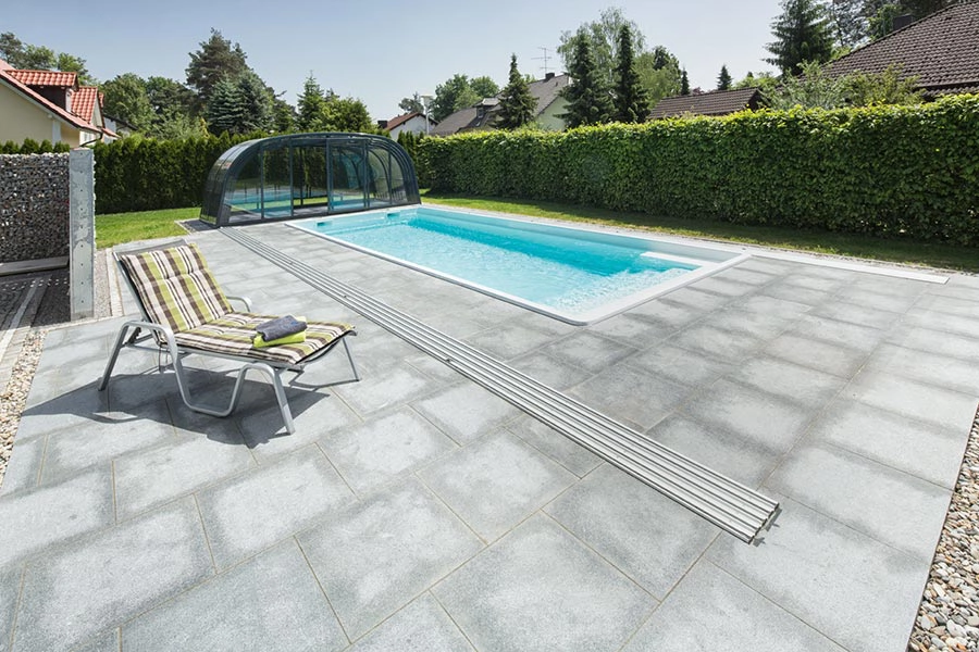 APHRODITE ist ein Poolmodell mit klarer und ruhiger Linienführung. Dieses Modell bietet vielfältige Möglichkeiten und kann zu jedem Baustil passend kombiniert werden. Die Treppenreihe mit geraden Linien gewährleistet einen bequemen Eintritt in den Pool, die erweiterte Ausführung der Treppe bietet ausgezeichnete Möglichkeiten, sie auch als Sitzbank zu nutzen.