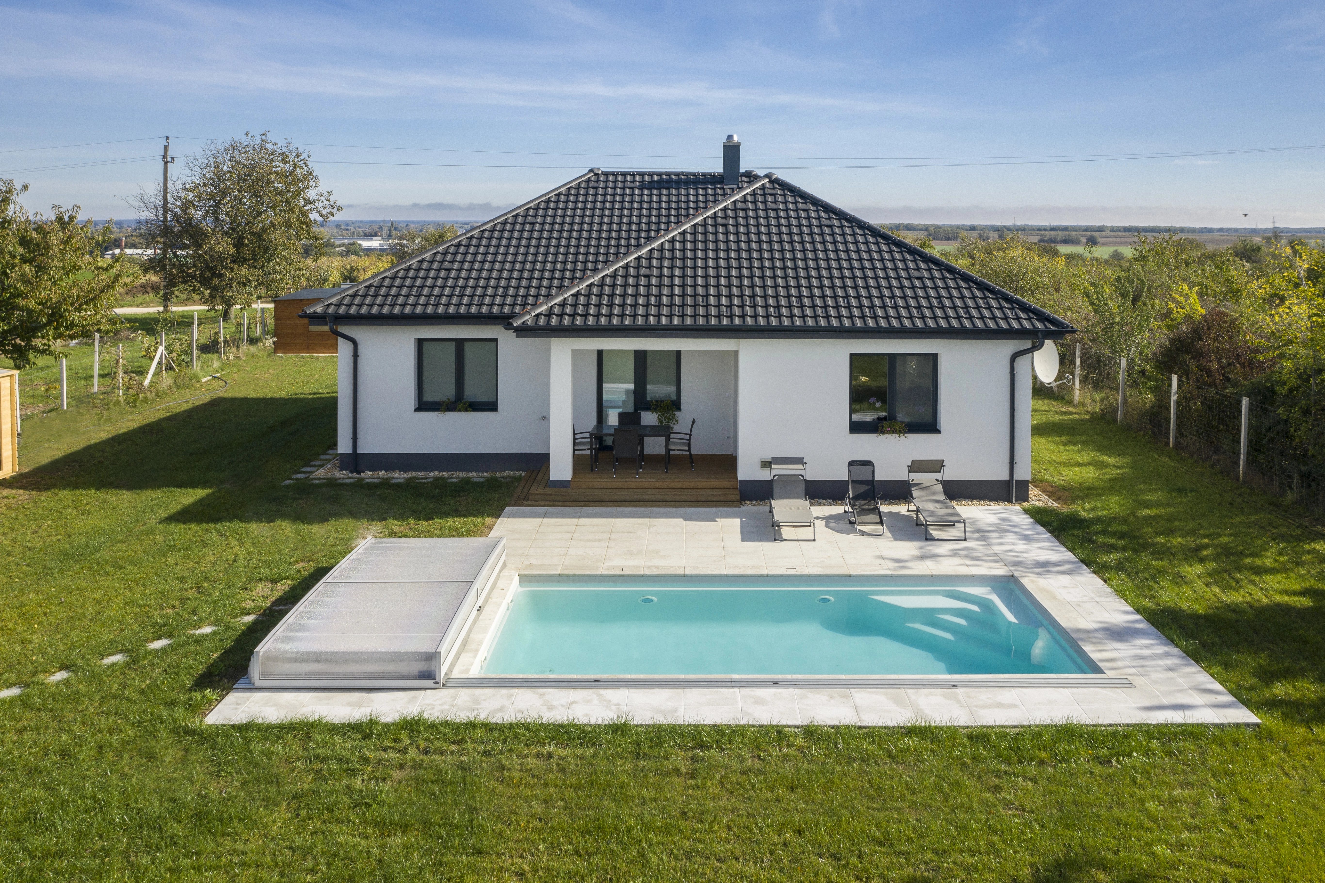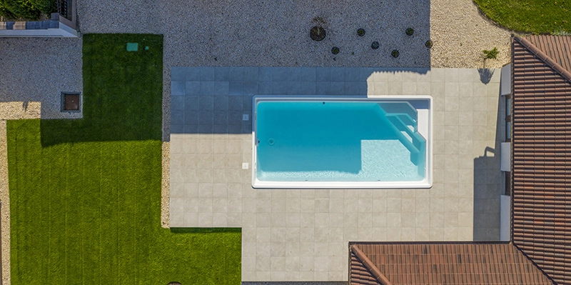 Dieser Swimmingpool begeistert mit moderner Linienführung und einer klaren puristsichen Formensprache. Wählen Sie vielfältige, weitere Möglichkeiten an Wasserattraktionen um, diesen Pool für sich und Ihre Kinder erlebnisreicher zu gestalten.