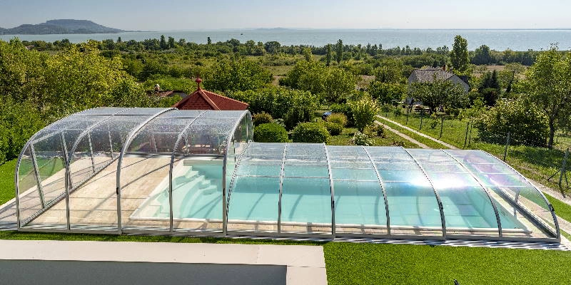 Das Modell LOK ist eine Kombination aus den Modellen HARMONIE/ HARMONIE PLUS und SUN/ SKY oder START/ STAR PLUS. Auf Grund der Kombination des flachen und höheren Modells lässt sich eine geräumige Vorhalle schaffen. Diese Poolüberdachung ist ideal optimiert für Ihren Außenpool und wird Ihnen mit Sicherheit große Freude bereiten.
