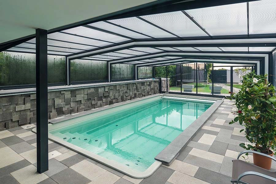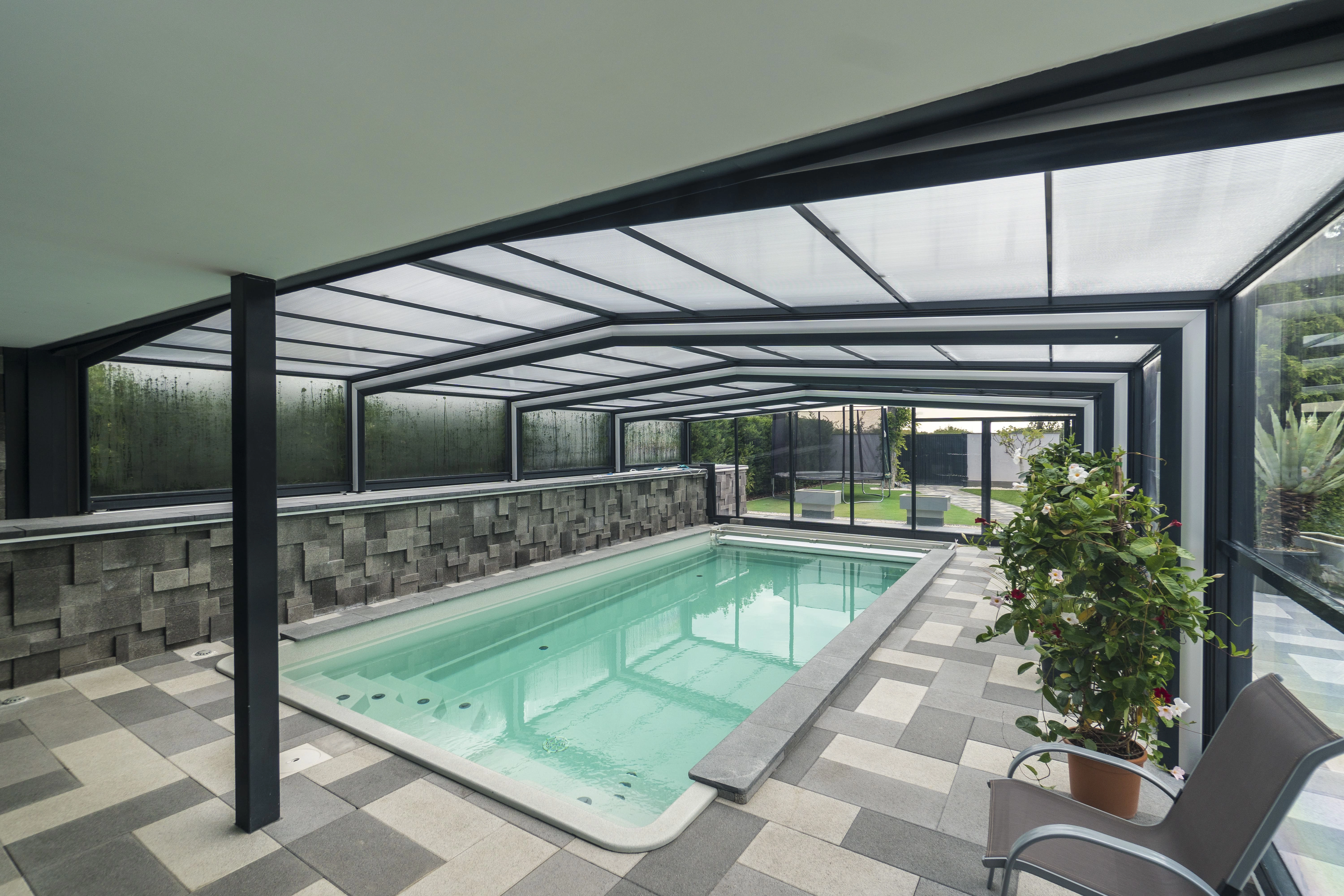 Die teleskopartig verschiebbare Abdeckung von ORION ohne Laufschienen mit vertikalen Seitenwänden gehört zu unseren Spitzenprodukten von novacomet und kann bis zu einer Spannweite von 10 m geliefert werden. Die Überdachung wird abhängig von der Größe mit manueller oder motorisierter Verschiebbarkeit angeboten. Wollen Sie Ihren Pool auch genießen, wenn es regnet, dann überdachen Sie ihn. Sie können mit diesem Modell immer zwischen echtem Freibadgefühl oder geschlossener Schwimmhalle wählen.
